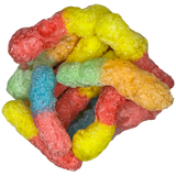 Sour Wigglers put a crunchy twist on Trolli Sour Worms, preserving their playful neon colors and dual-fruit combos while adding a tart snap to every bite. Packaged in a 16oz deli container and made in small batches by our small commercial kitchen, each freeze-dried candy is crafted with care and bursting with flavor. We pride ourselves on delivering fresh, delicious candy creations with an unforgettable crunch.